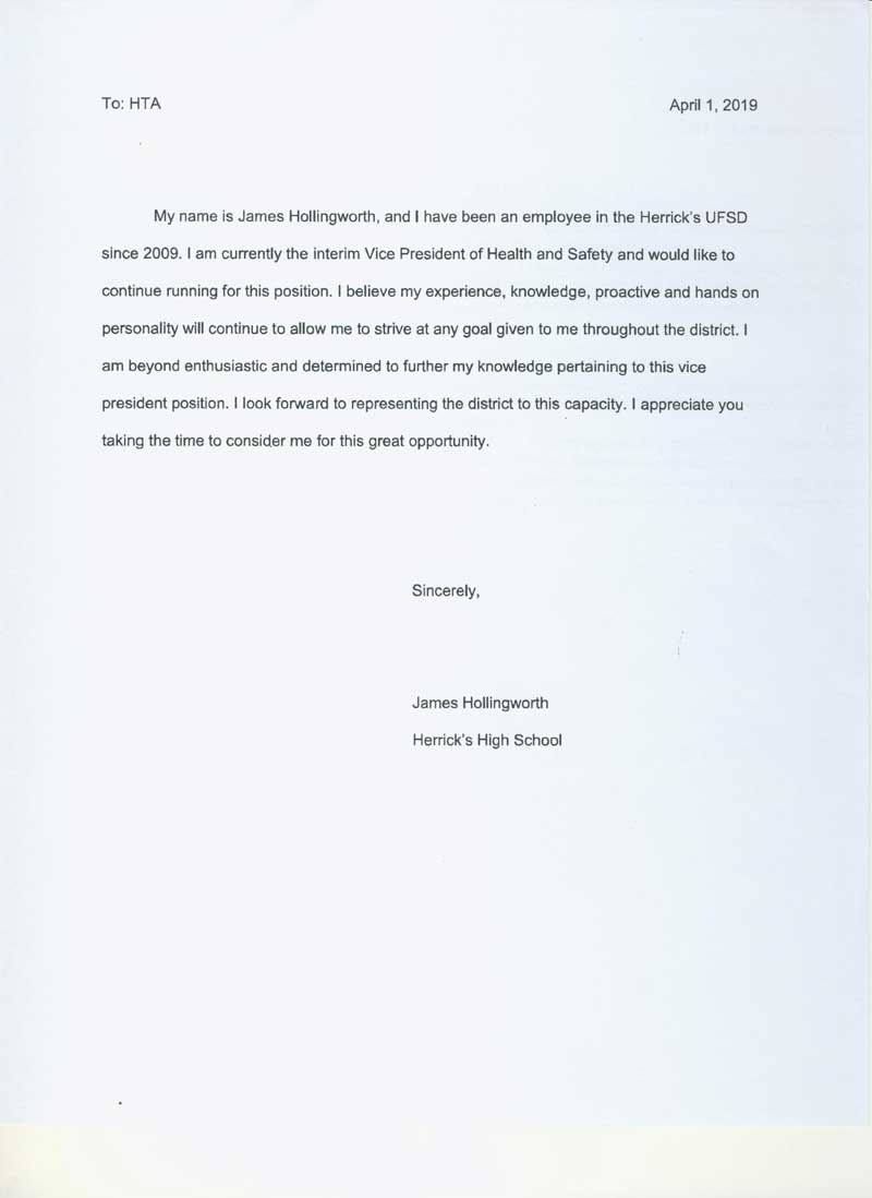 2019-2020 HTA Governing Board Candidates’ Resumes Elections to be held at each bldg on: Wed., May 15, 2019